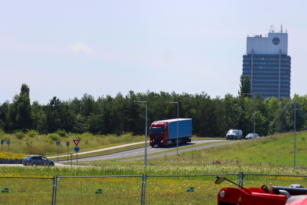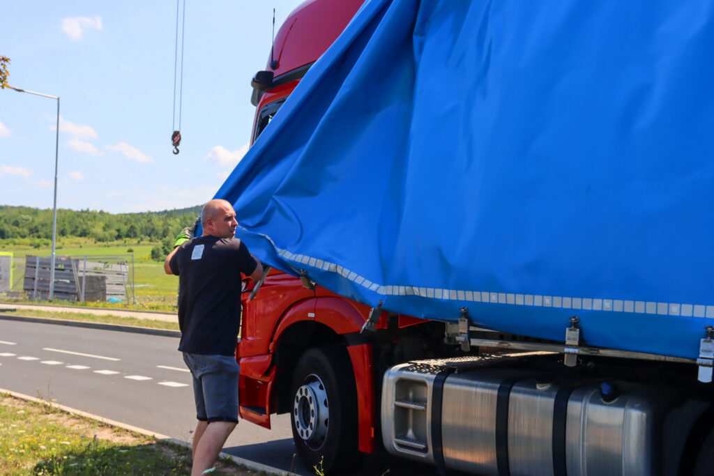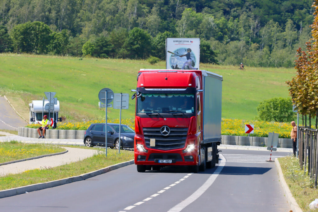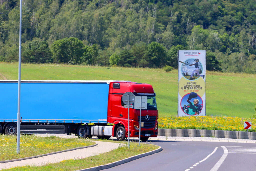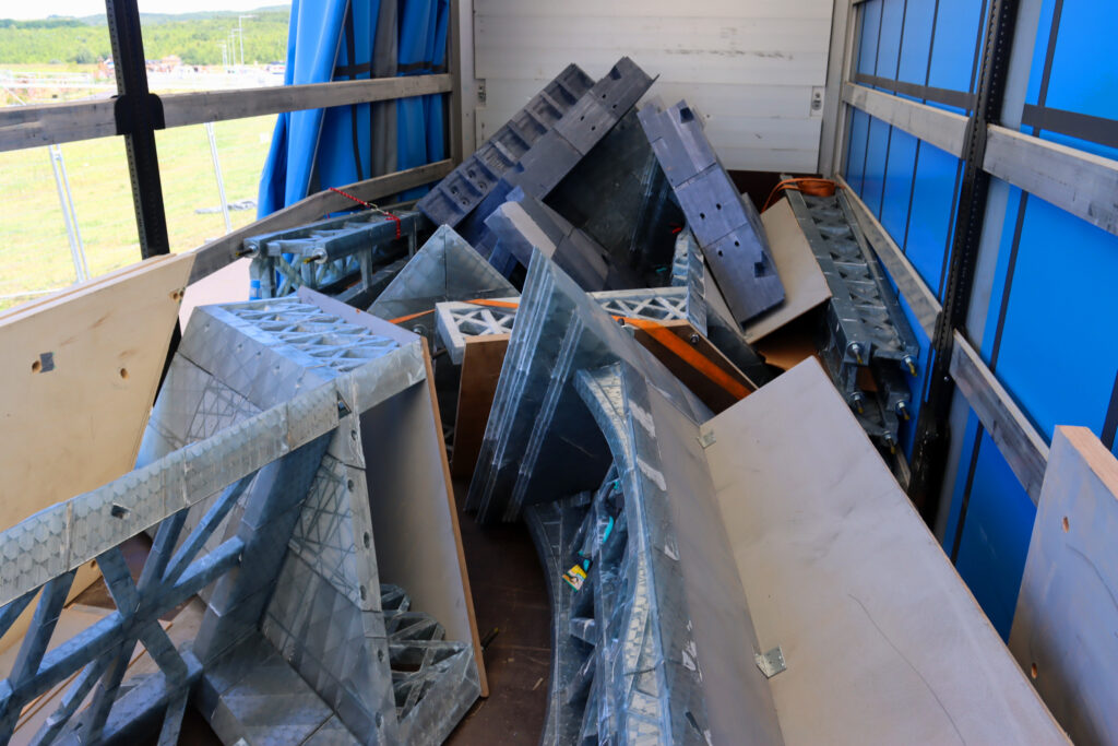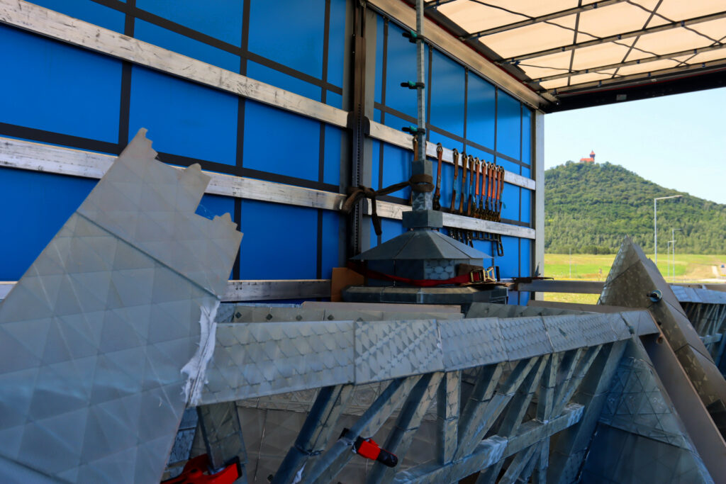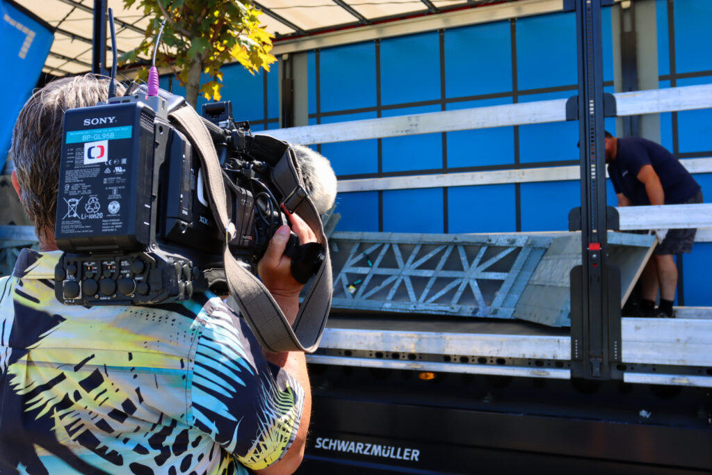 Dnes po poledni dorazil první ze dvou kamionů, který převážel kopii Eiffelovy věže k jezeru Most. Tato kopie byla již předem složena a bude u jezera finálně dokončena během pěti dnů.
