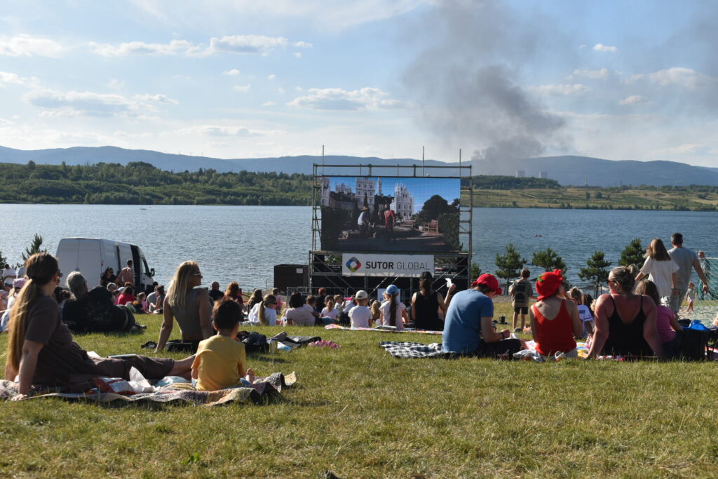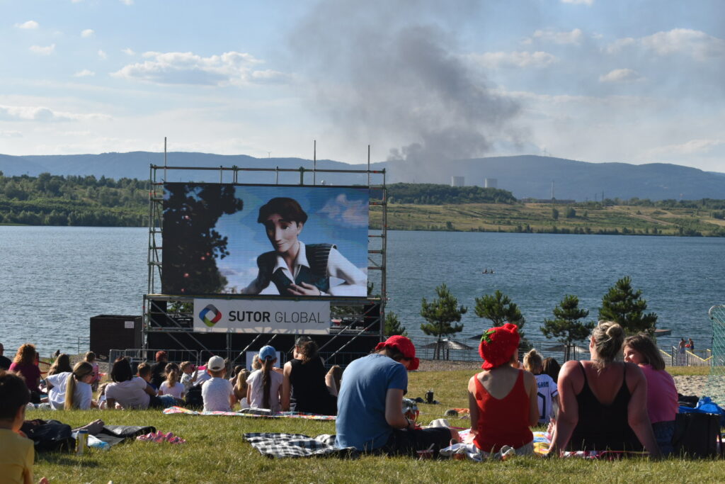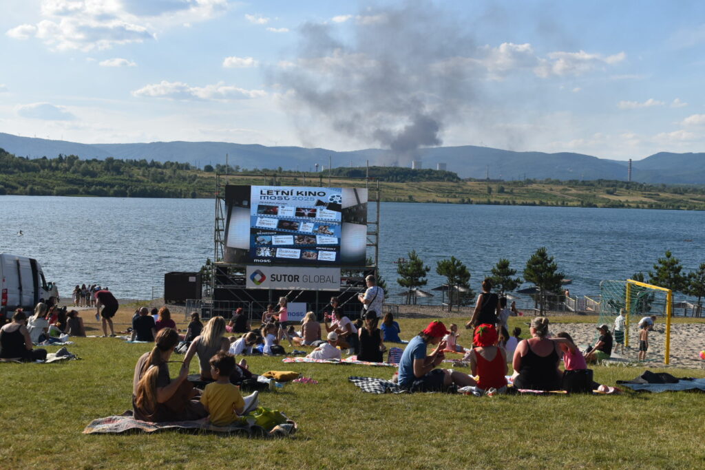 Začalo poslední letošní letní kino u jezera Most. Promítání pod širým nebem přilákalo za slunečného počasí desítky návštěvníků, kteří si užívají příjemný večer s filmy, přestože jim v pozadí atmosféru narušuje neobvyklý výjev – z litvínovské chemičky totiž stoupá hustý černý dým. V rafinerii probíhá spalování přebytečných plynů, které souvisí s výpadkem elektrické energie, k němuž dnes došlo. Letní kino tak i letos nabízí nejen zábavu, ale občas i nevšední kulisu.