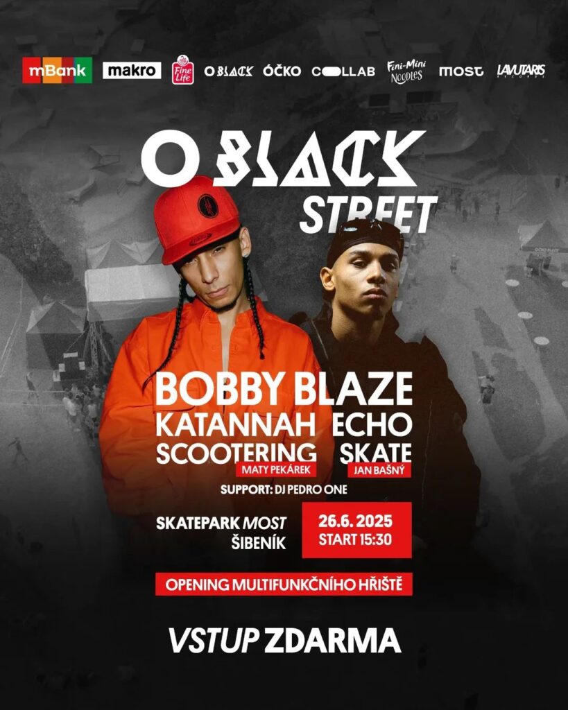 Hudba, pohyb, umění a městská atmosféra – to vše nabídne druhý ročník akce O Black Street, která se uskuteční ve čtvrtek 26. června v parku Šibeník. Festival, jehož pořadatelem je hudební televize O Black (součást TV ÓČKO), obsadí jak skatepark, tak nově otevřené multifunkční hřiště. Vstup je pro veřejnost zcela zdarma.