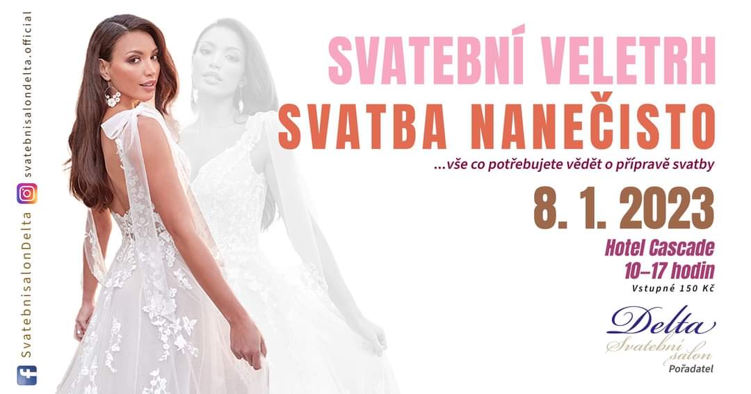 Další ročník tradičního regionálního veletrhu Svatba Nanečisto, který pořádá Svatební salon Delta proběhne v neděli 8. 1. 2023 v Hotelu Cascade v Mostě. Na akci vás čekají přehlídky svatebních šatů či seminář o přípravě svatby. Vstupenky budou k zakoupení na místě. Akce probíhá od 10:00 do 17:00.