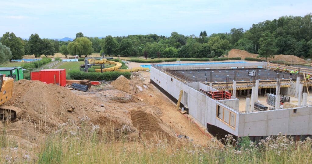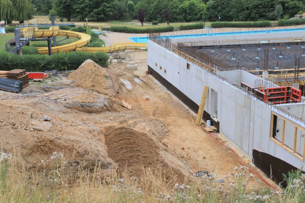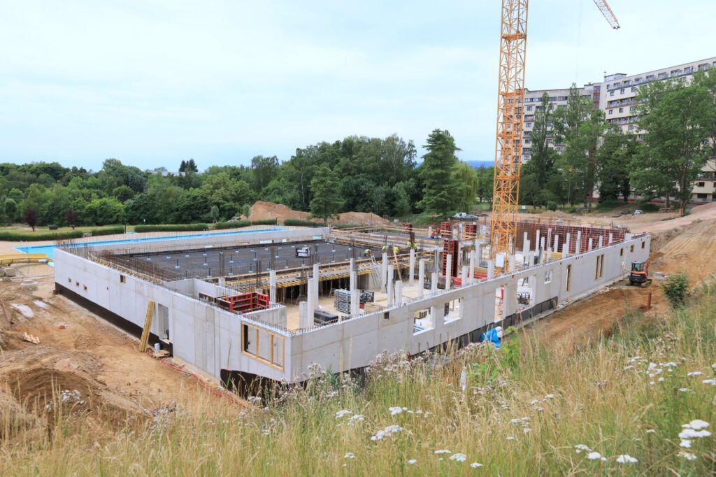 Třípodlažní komplex nabídne plavecký i rekreační bazén, wellness se saunami, vířivkami a masérnou, a také moderní zázemí pro sportovní kluby i veřejnost. Součástí areálu bude rovněž občerstvení a nové hygienické prostory. Na staveništi je v těchto dnech viditelný postup – část konstrukce je již dokončena a začínají práce na interiérech technického zázemí.
