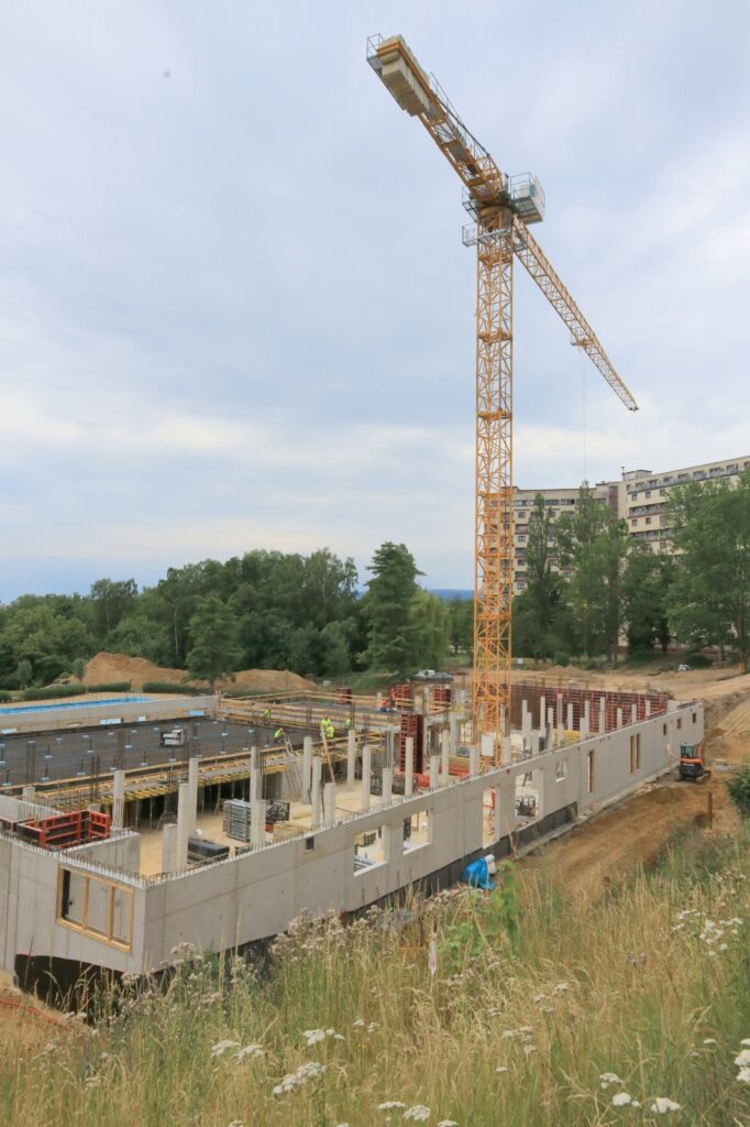 Výstavba nové plavecké haly v Litvínově pokračuje podle plánu. Od zahájení stavby letos v lednu uběhlo již půl roku a práce na moderním sportovním areálu jsou nyní v plném proudu. Hotovo by mělo být v červnu 2026.