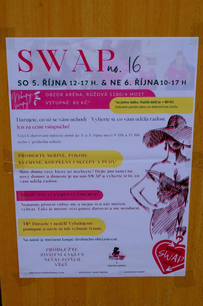 Smyslem SWAPu je totiž hlavně slow fashion a ekologie. Účastí prodloužíte výrobkům jejich životní cyklus – přinesete vše, co vám doma jen překáží a vyberete si to, co se vám může hodit. Vstupným navíc vždy přispějete na dobrou věc. Na výběr i tentokrát bylo desítky dámského a dětského oblečení, hraček, bot, drogerie, knih, různých potřeb do domácnosti a mnoho dalšího.