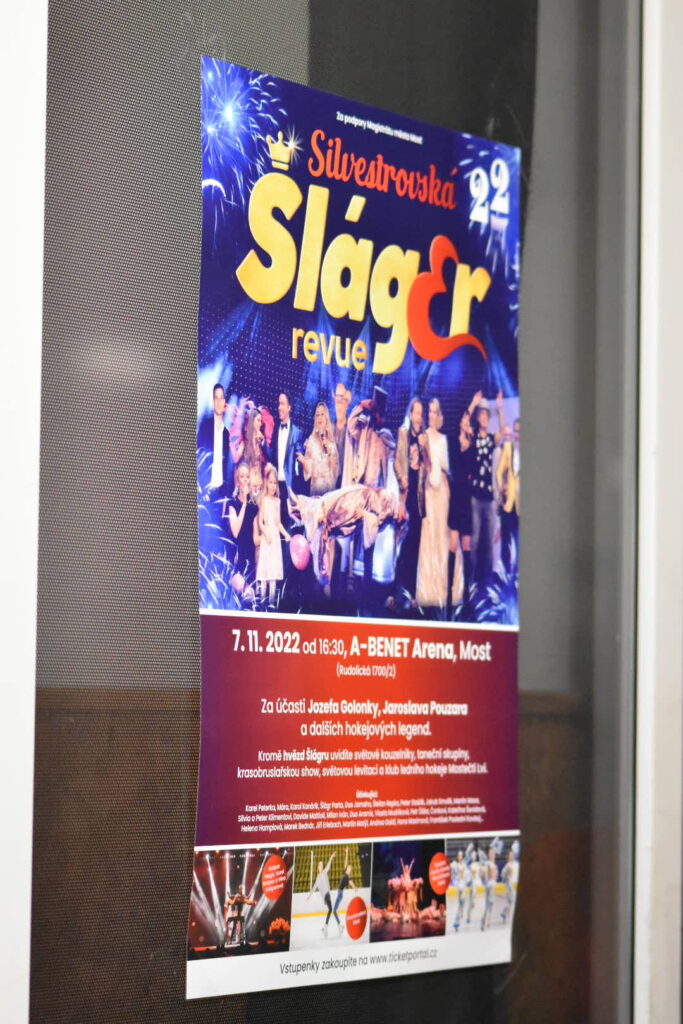 V pondělí 7. listopadu 2022, se v mostecké A-benet aréně (Zimní stadion Most) uskutečnilo natáčení Silvestrovského Šlágr Revue, které se odvysílá při oslavách nového roku. Celá tribuna se tak zaplnila nejen seniory, na které čekal opravdu bohatý program v podobě světových kouzelníků, taneční skupiny, krasobruslařské show, světové levitace, klubu Mostečtí Lvi nebo legendy Josefa Galonky, Jaroslava Pouzara, šlágru Duo Jamaha, Jakuba Smolíka, Kateřiny Ševidové a mnoho dalších!