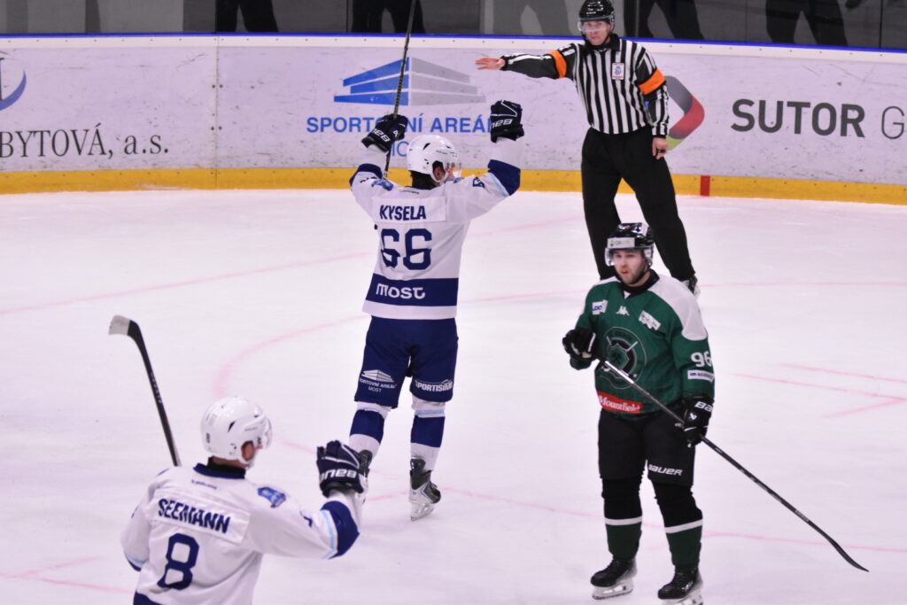 Mostečtí hokejisté podali proti favorizované Příbrami bojovný výkon a dlouho drželi s lídrem 2. ligy – Západ krok. Domácí dokázali smazat dvoubrankové manko a ve druhé třetině vyrovnali na 2:2 díky dvěma zásahům Kysely. Hosté však v závěrečné části potvrdili svou formu a dvěma góly rozhodli o vítězství 4:2.