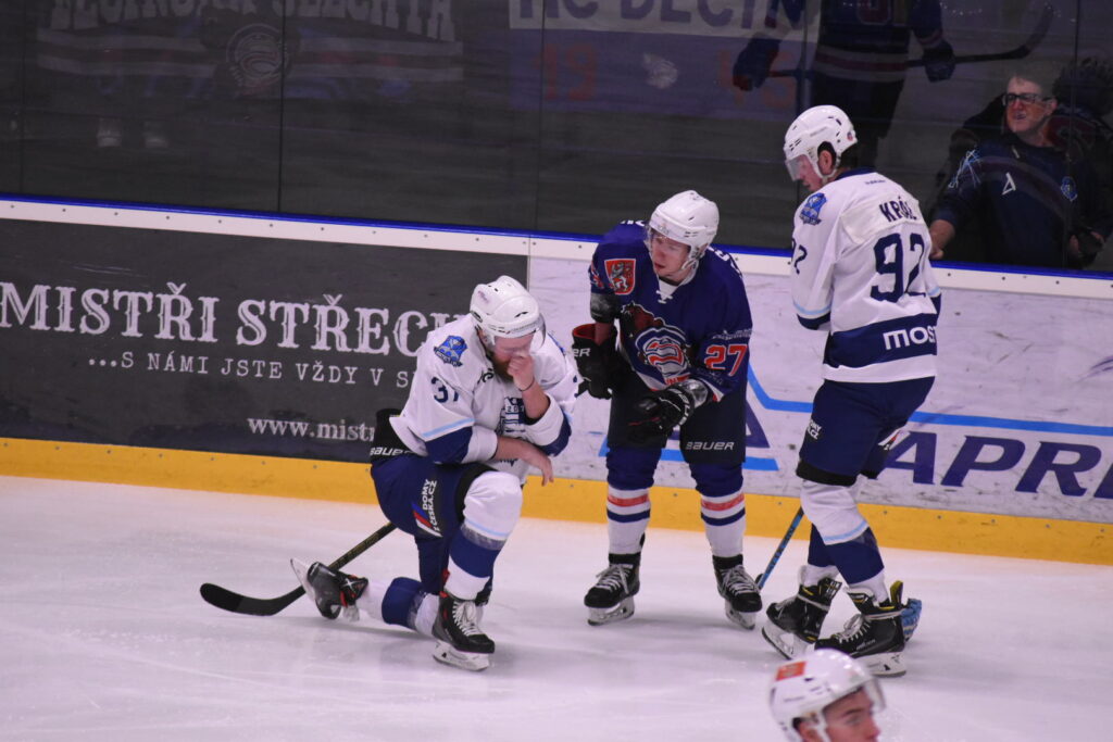 HC Děčín: Lavinger (22. M. Petrásek) – Bartoň, Vl. Brož (A), Jebavý, Zedek, A. Starý, Loukota – Nezbeda, Faigl (C), D. Tůma (A) – Parshakov, Jursa, Smola – Macek, D. Černý, Hruška – Nowák.
