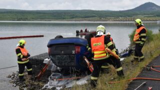 Na Jezeře Most dnes proběhlo taktické cvičení jednotek IZS. Námětem cvičení byla havárie osobního auta, které se převrátilo ze břehu