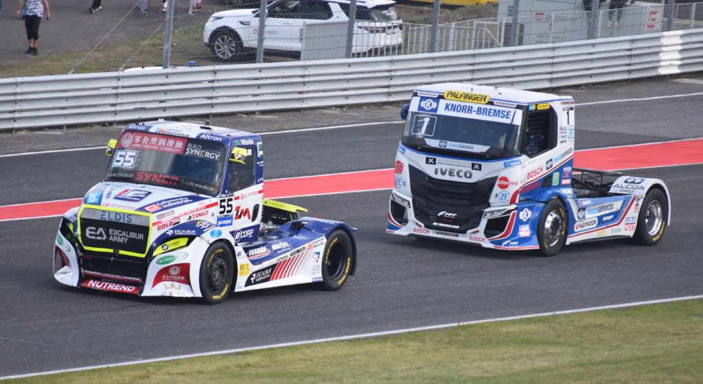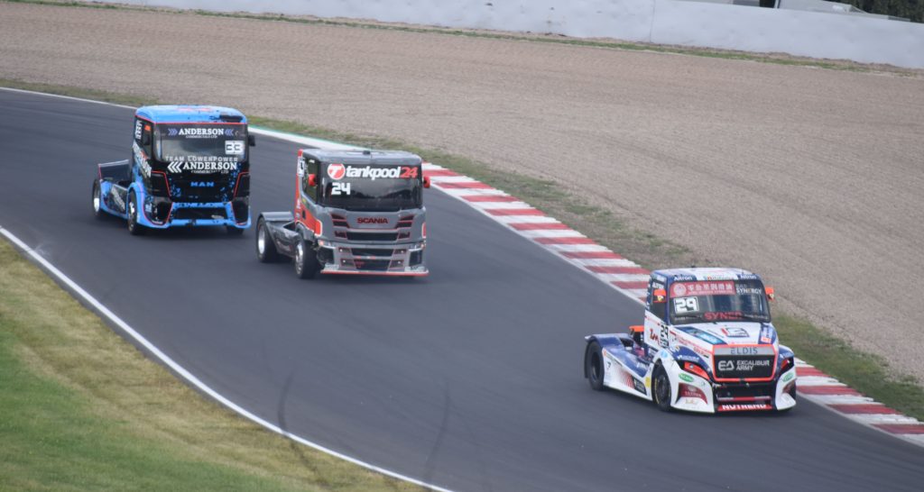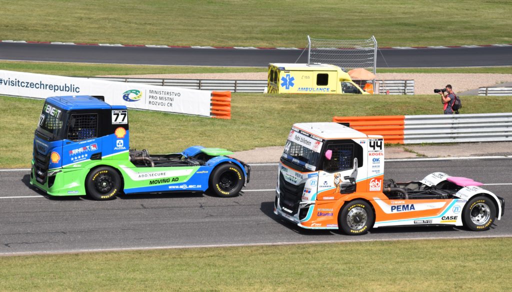 Mezi trucky měla Česká republika svého zástupce v podobě zkušeného Adama Lacka, jezdce týmu Buggyra Racing. První sobotní první závod rámovaný proměnlivým počasím přinesl Lackovi, který se netají svou oblibou v jízdě na mokru, třetí místo. V druhém závodě skončil po technických problémech na osmém místě. Převážně slunečná neděle byla pro Lacka ještě úspěšnější. V prvním závodě obhájil po několikakolové nervy drásající bitvě druhé místo. „Nejprve byl za mnou Němec Jochen Hahn, pak jeho krajan Sascha Lenz. Zkoušeli to na mě oba několikrát v každém kole, ale držel jsem správnou stopu a nedal jim prostor,“ zhodnotil bezchybnou jízdu Lacko.V druhém odpoledním závodě skončil čtvrtý. Nejvíce bodů si do evropského šampionátu z Mostu odváží létající Maďar Norbert Kiss, který během víkendu vybojoval dvě první a jednu třetí pozici.