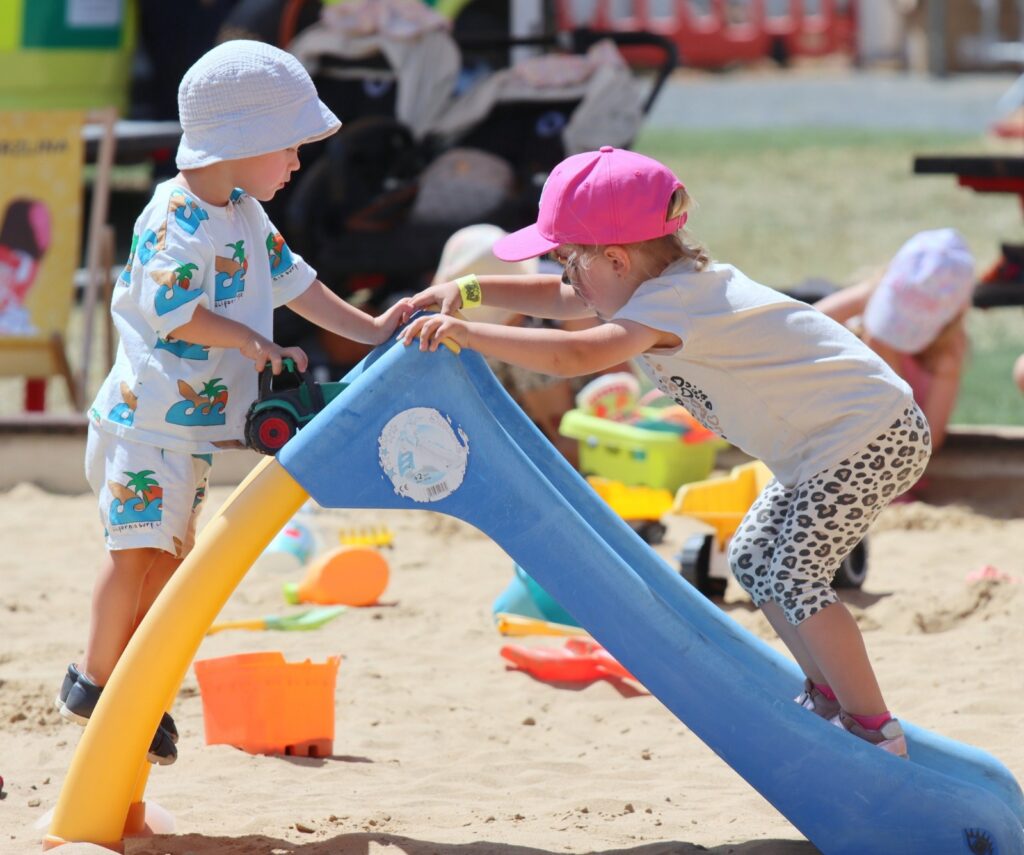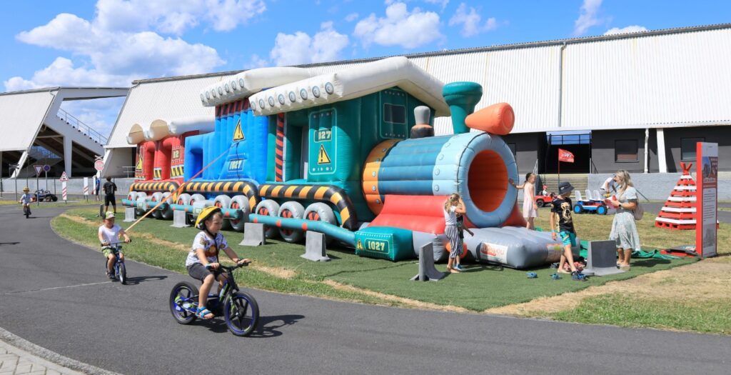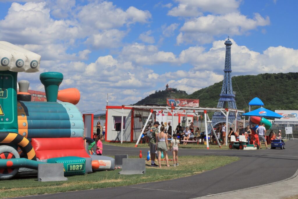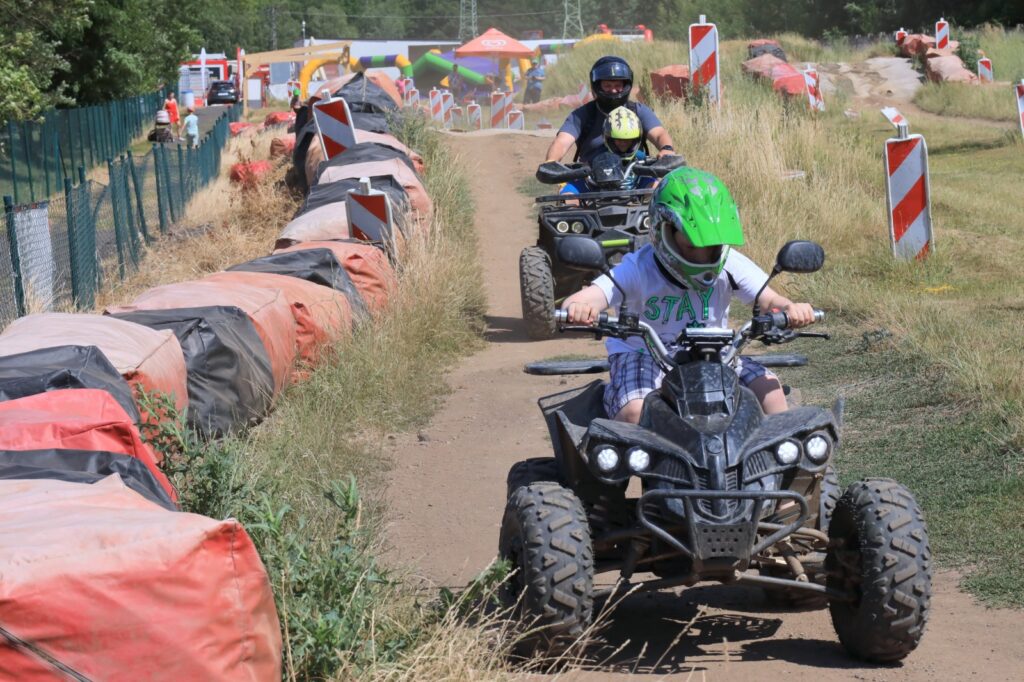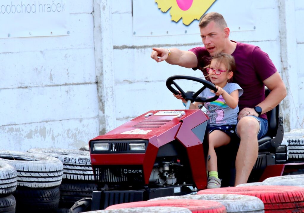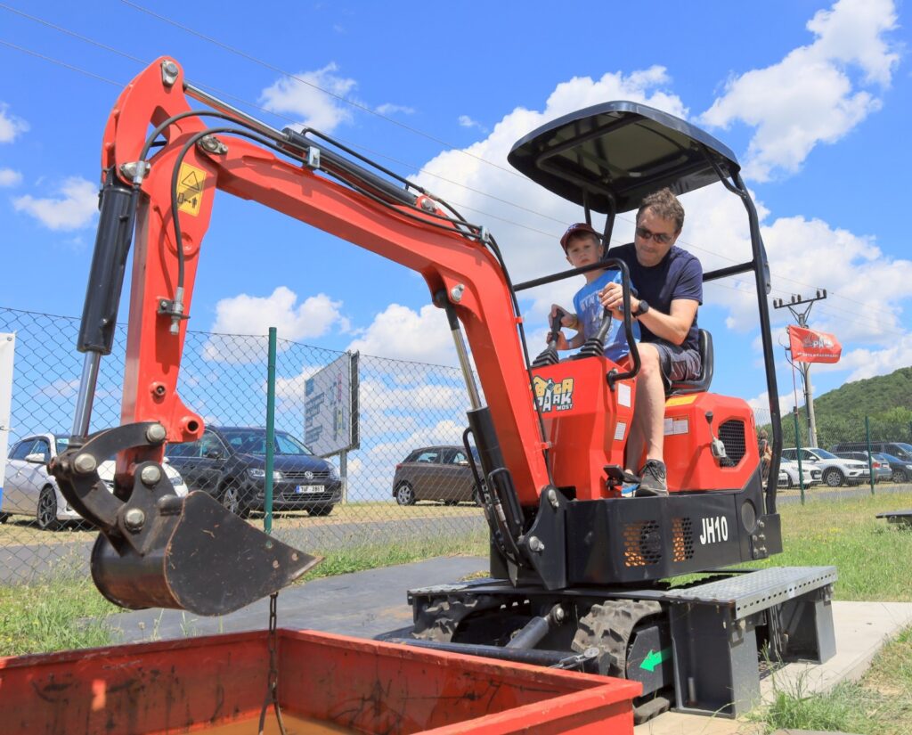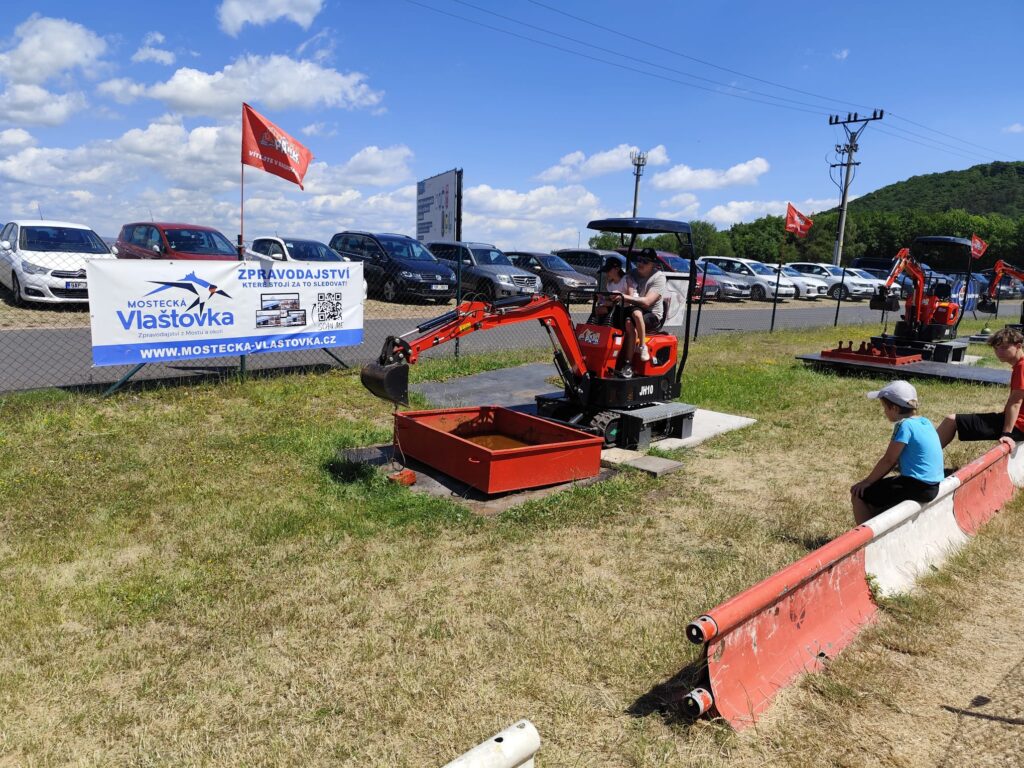 Součástí programu bylo i divadlo pro nejmenší, malování na obličej a především populární jízdy na skutečných stavebních strojích. Malí i velcí si mohli vyzkoušet jízdu na dumperu, válci, minibagru, smykovém nakladači či velkém bagru. Nechyběly ani čtyřkolky, traktory, lodičky a vodní atrakce, které přinesly v horkém dni vítané osvěžení.