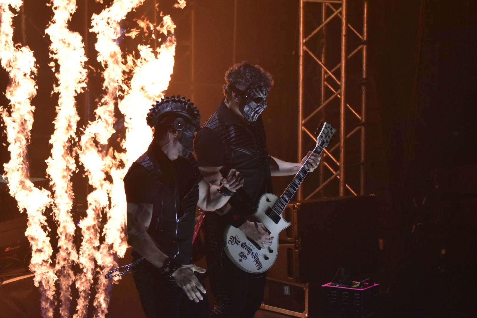 Fanoušci se dočkali dokonalé show plné světel, energie a ohně. Dymytry nabídli výběr svých největších hitů i novější skladby z aktuální tvorby. Typické masky, mohutný zvuk a precizně zpracovaná vizuální produkce proměnily sportovní halu v obrovský metalový kotel. Podívejte se do naší fotogalerie, jak metalový večer v mostecké sportovní hale probíhal.