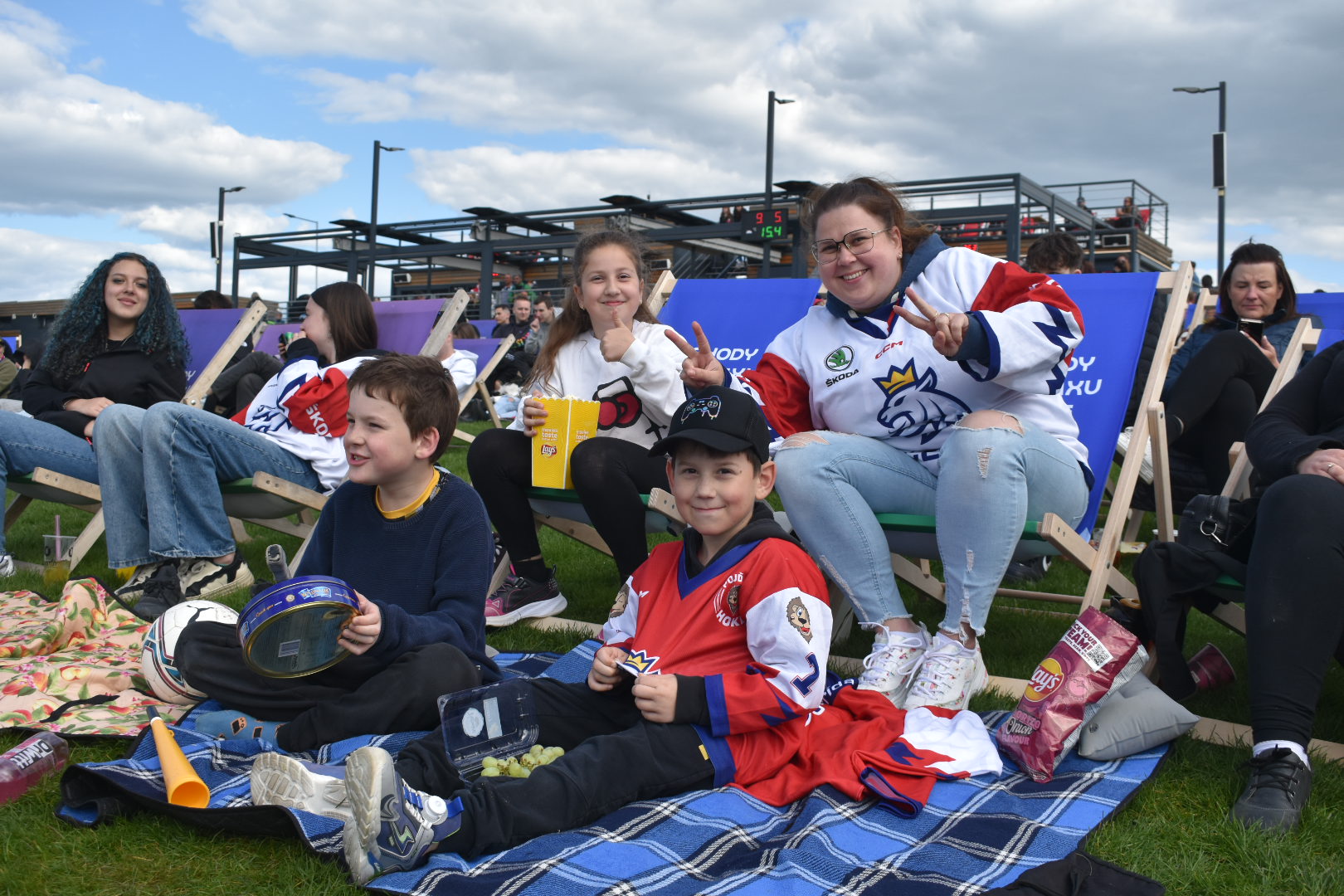 U jezera Most to dnes žije hokejem. Stovky fanoušků sledují světový šampionát pod širým nebem v zápase české hokejové reprezentace, která na úvod měří síly se silným Švýcarskem. Plné je i přilehlé parkoviště u jezera. Velkoplošná obrazovka, pohodlné zázemí, slunečné počasí a chutné občerstvení dělají z fandění zážitek pro celou rodinu.