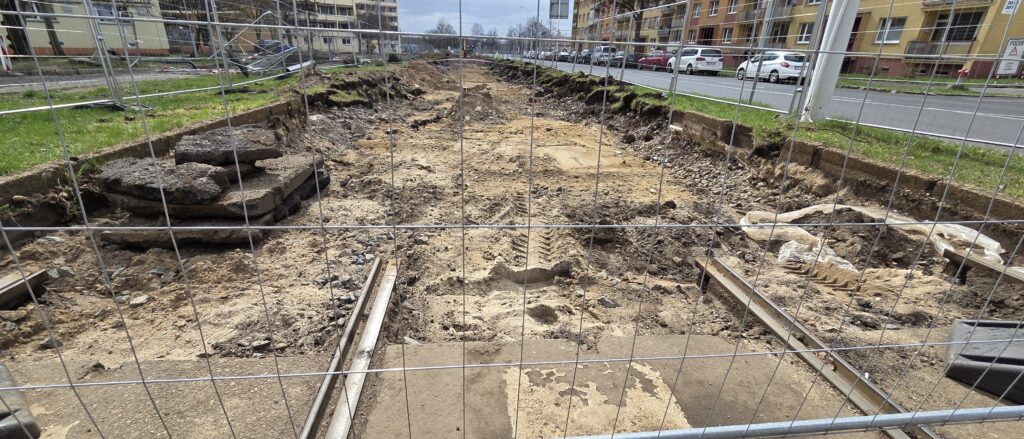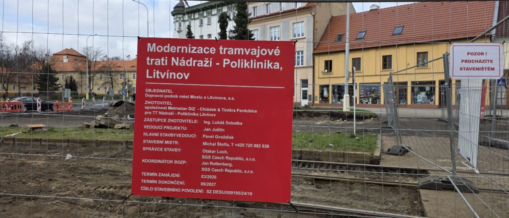 Modernizace tramvajové trati mezi litvínovským nádražím a zastávkou Litvínov, Poliklinika je v plném proudu a práce pokračují podle stanoveného harmonogramu. Dělníci postupně odstraňují staré koleje a budují nové, které splňují současné technické i bezpečnostní standardy.