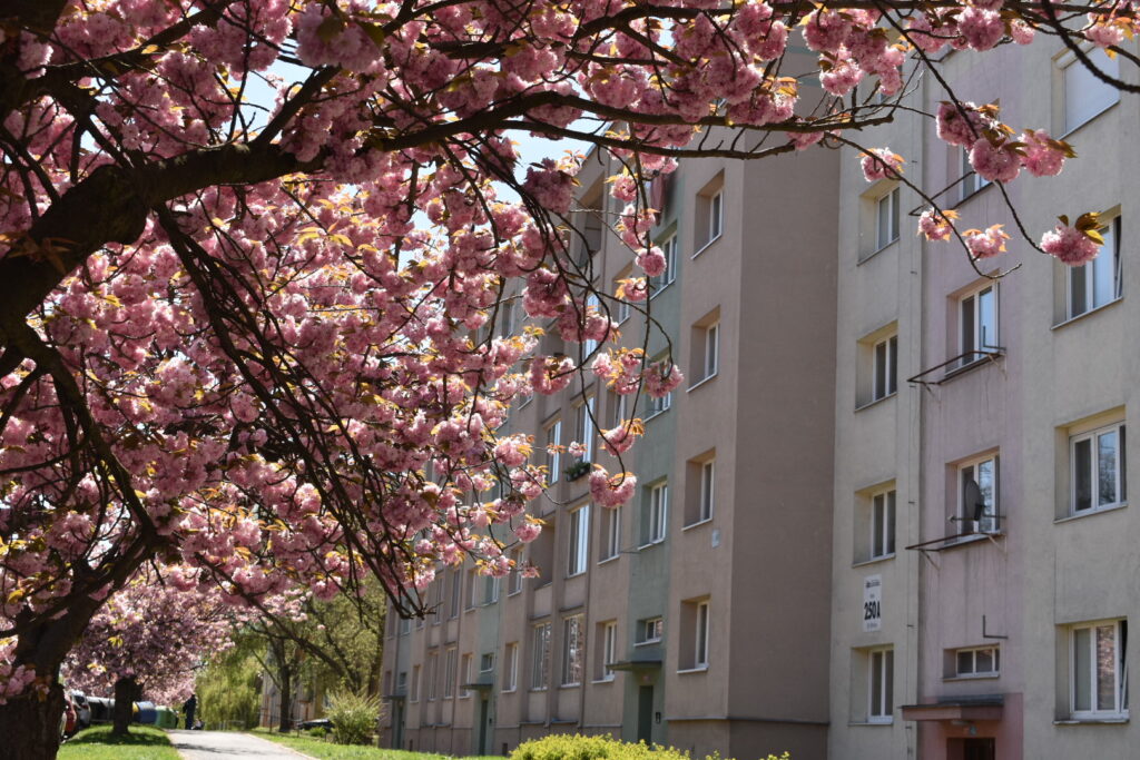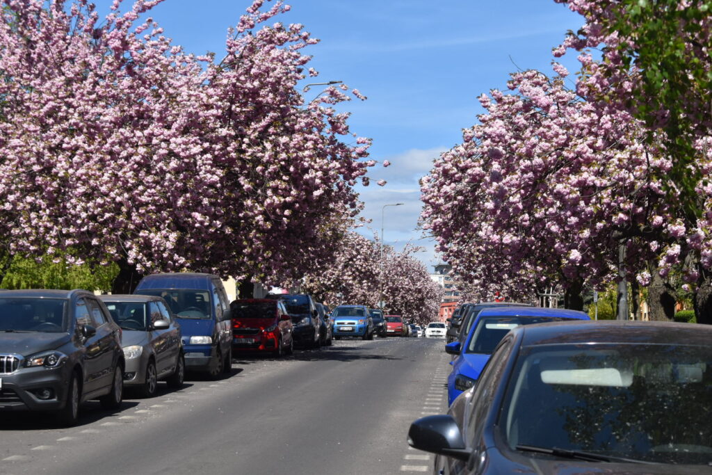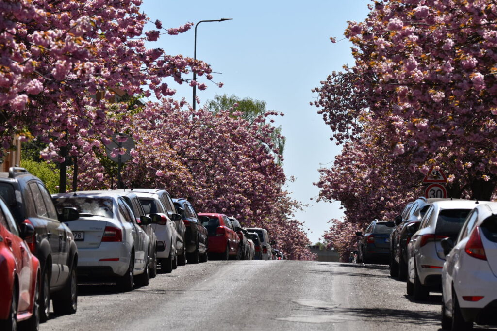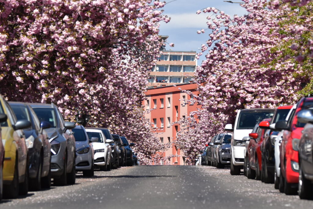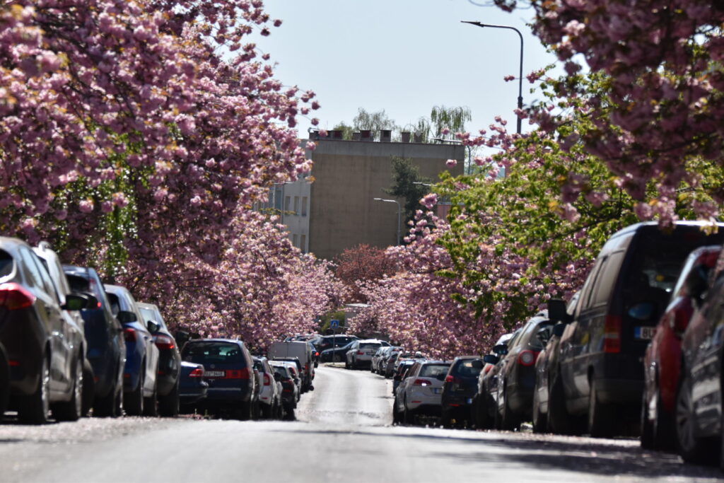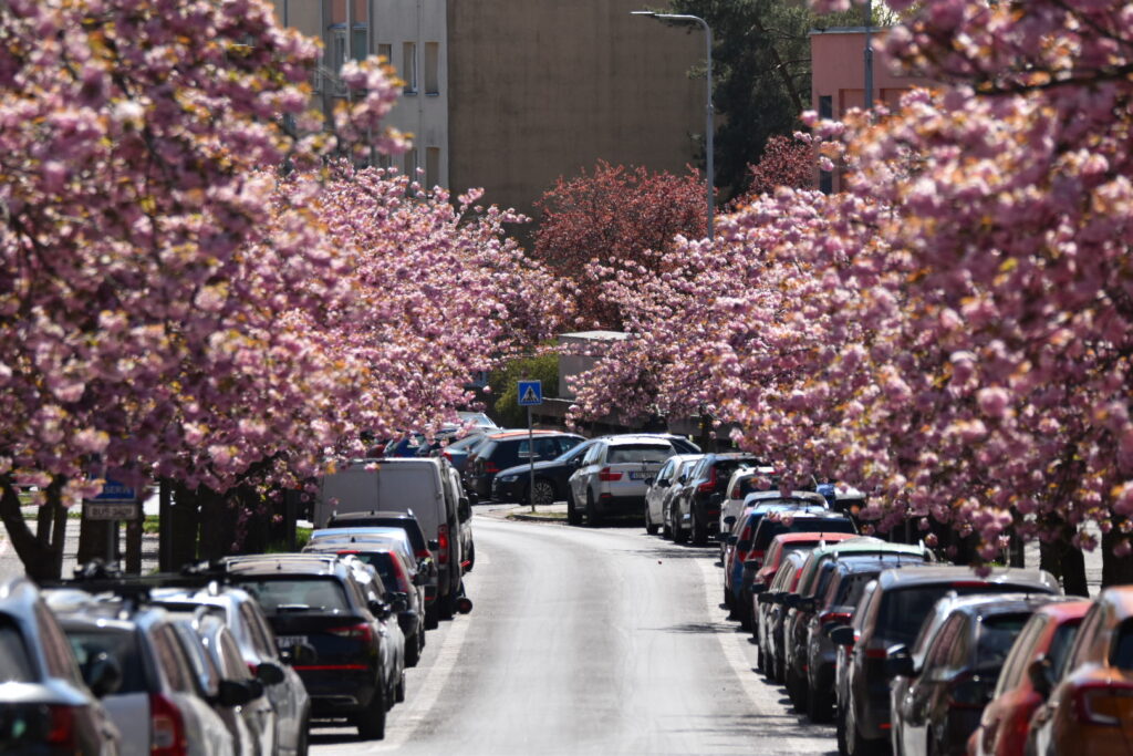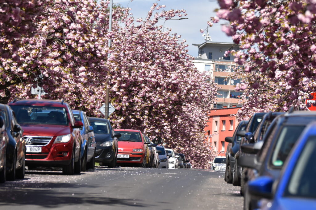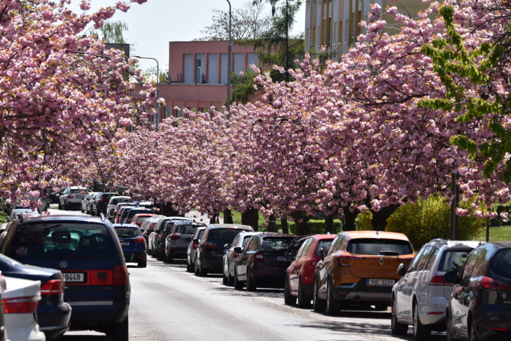 Aleje japonských třešní nyní zdobí například ulici Vítězslava Nezvala, Bělehradská, Zdeňka Fibicha nebo okolí městské knihovny. Koruny stromů jsou obsypané květy a postupně se do růžova zbarvují i chodníky, kde brzy vznikne typický „růžový koberec“ z opadaných lístků.