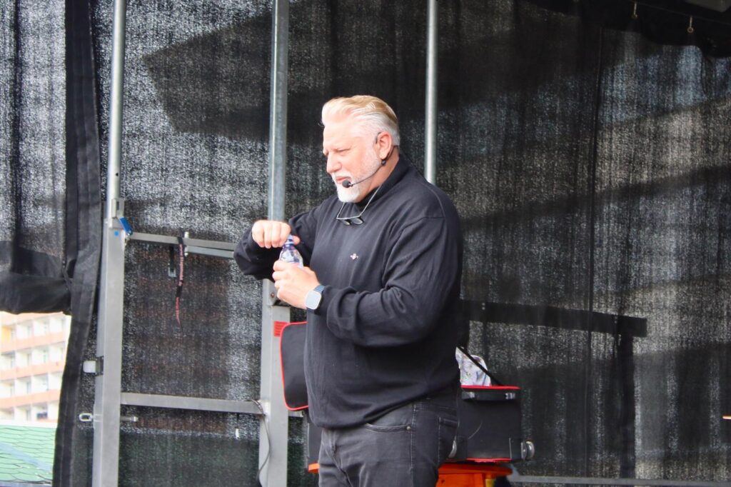 Okolo 15. hodiny se na pódiu objevil známý břichomluvec Zdeněk Polách se svým nezbedným parťákem Matýskem. Jejich vystoupení plné vtipu, improvizace a komunikace s publikem rozesmálo děti i dospělé. Matýsek tradičně nešetřil komentáři, které zvedaly ze židlí i ty největší bručouny.