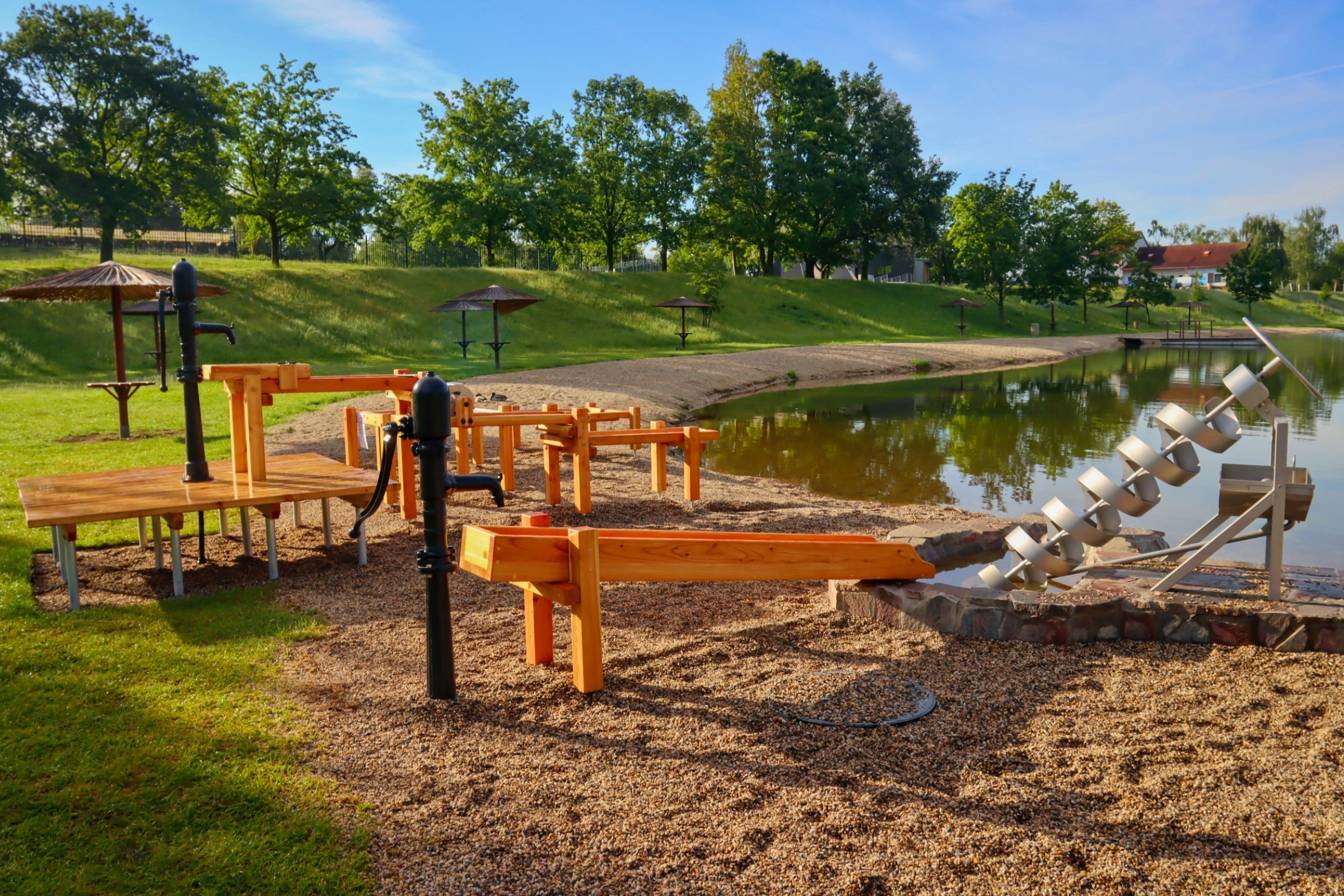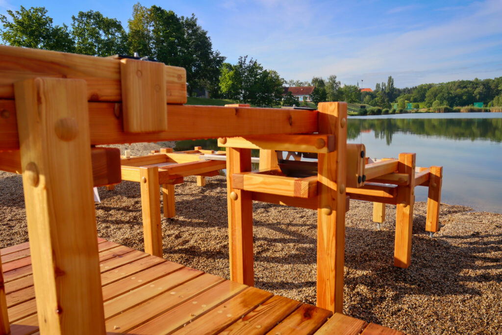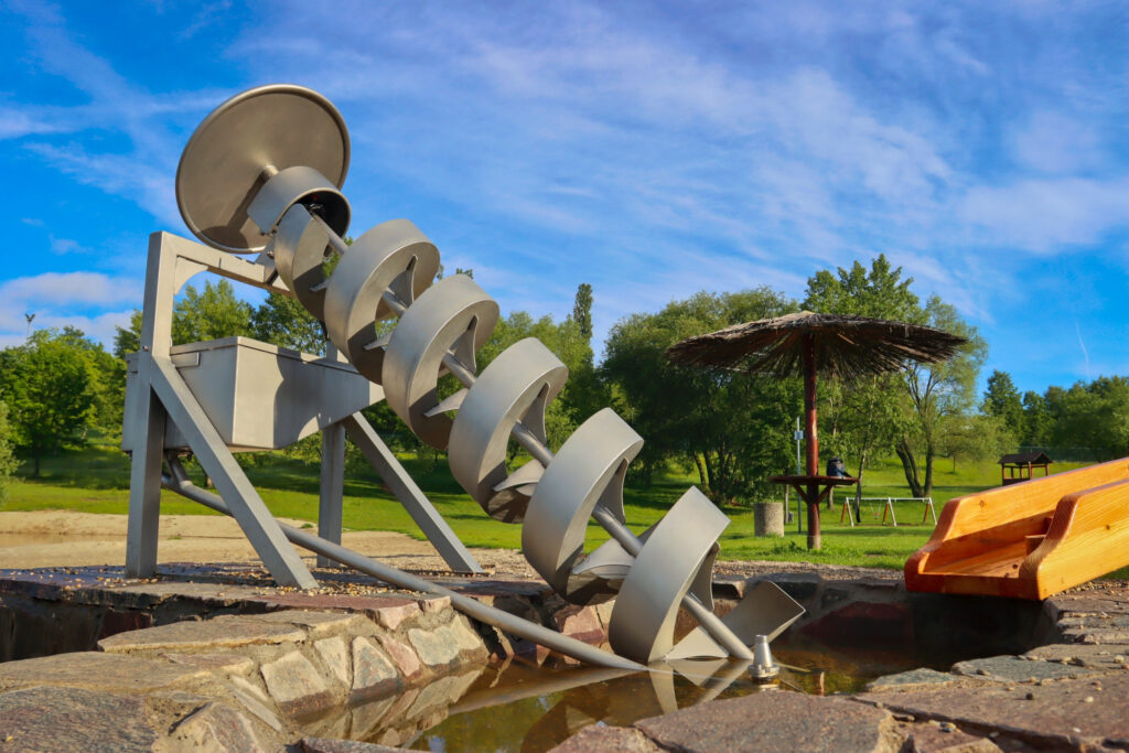 Výsledná realizace mě příjemně překvapila. Líbí se mi rozdělení hřiště na dvě samostatné části, kdy se děti mohou u jednotlivých prvků vystřídat. Mě osobně nejvíc baví část s Archimédovým šroubem, kde mohou děti i dospělí vidět starodávný systém nabírání vody.