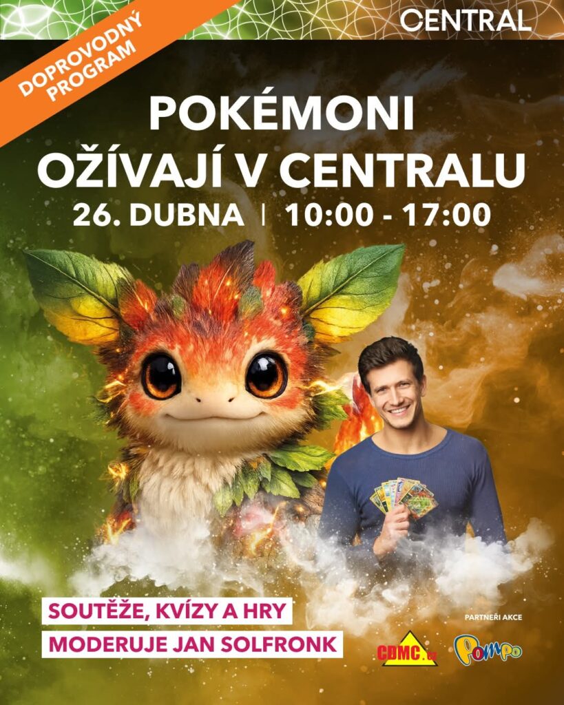 Obchodní centrum Central se v neděli 26. dubna promění v místo, které potěší všechny fanoušky světa Pokémonů. Akce nabídne program pro děti i dospělé a přenese návštěvníky do prostředí plného oblíbených postaviček, her a sběratelských zážitků.