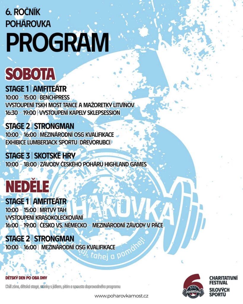 Program letošní Pohárovky bude nejrozsáhlejší v její historii. Návštěvníci uvidí soutěže v benchpressu nebo mrtvém tahu, chybět nebudou ani atraktivní strongman disciplíny se zahraniční účastí. Doplní je například armwrestling, ukázky práce lumberjacků nebo skotské hry.