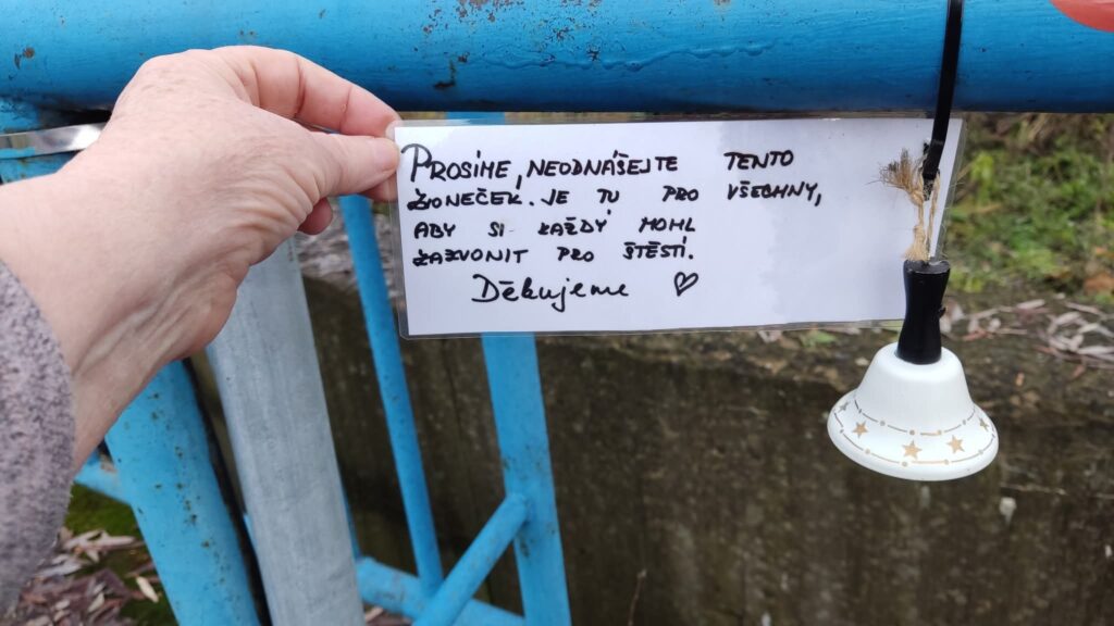 Na první pohled nenápadná věc. Malý bílý zvoneček, kousek červené vánoční výzdoby a ručně psaná cedulka s prosbou, aby ho lidé neodnášeli. Přesto právě tento drobný předmět u lávky přes Bílý potok v Litvínově rozpoutal silný příběh, který v posledních dnech hýbe sociálními sítěmi i emocemi místních.