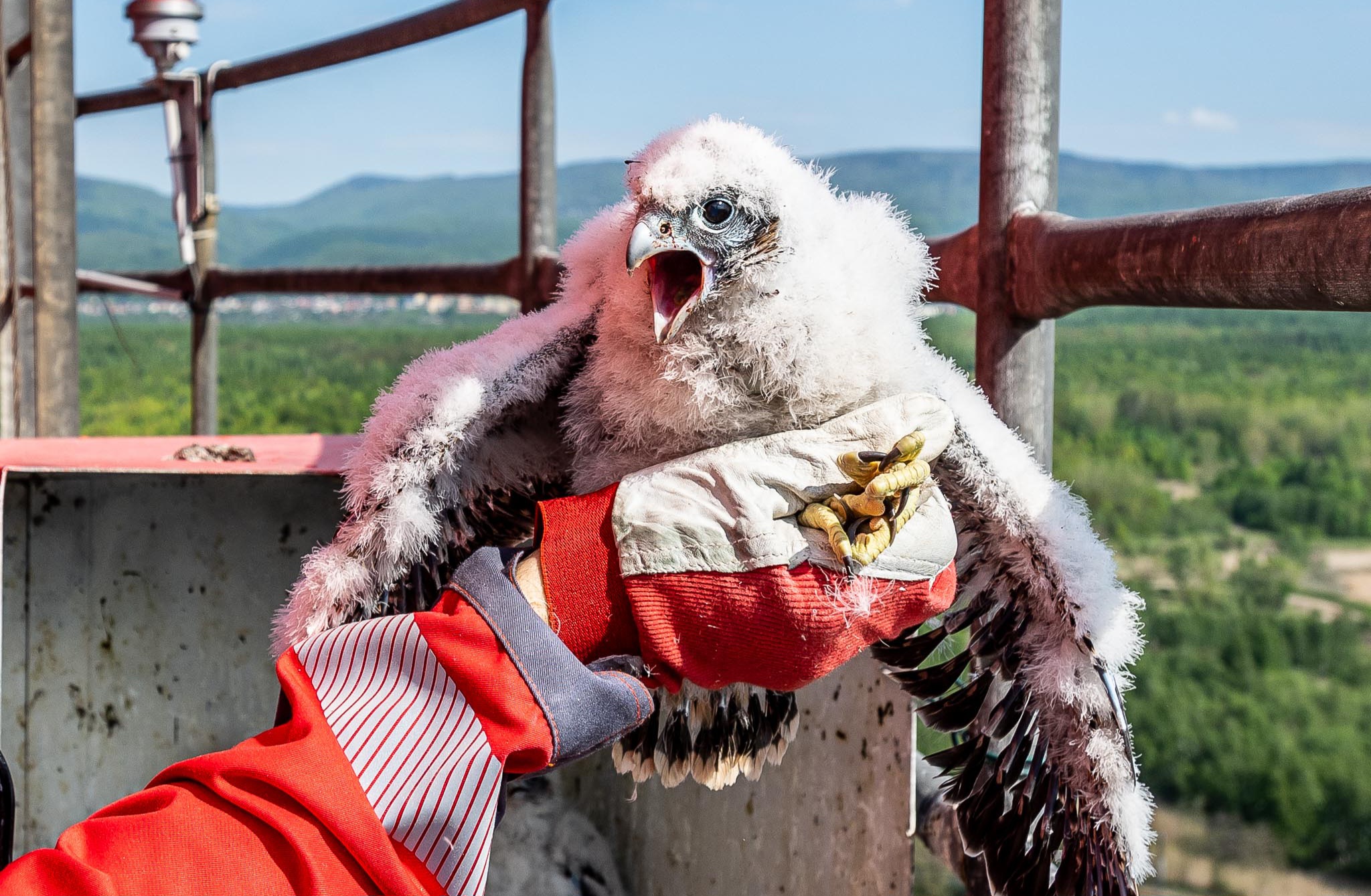 ŽIVĚ: Sokolí rodiče zahnízdili na komíně litvínovské rafinerie. Sledovat je lze přes online kamery